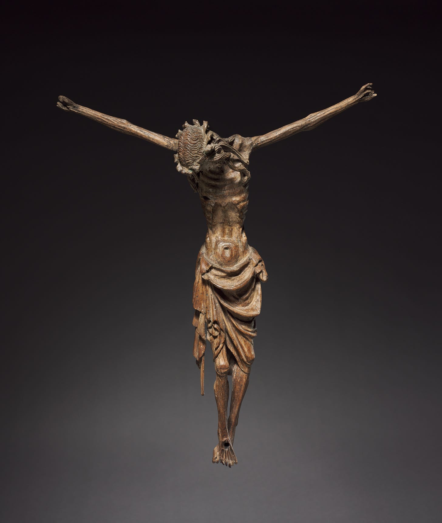 Crucified Christ, c. 1340–1350. Germany, Cologne, 14th century. Wood (walnut) once polychromed; overall: 41.6 x 36.9 cm (16 3/8 x 14 1/2 in.). The Cleveland Museum of Art, Andrew R. and Martha Holden Jennings Fund 1981.52